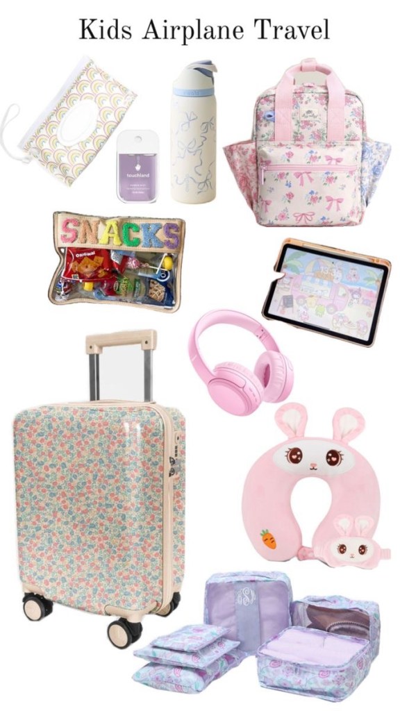 I try to pack everything possible in packing cubes in their checked in luggage. then they have a small manageable back pack for them to carry. Once again, tablets, head phones, sanitizer, neck pillow, empty water bottle, snacks and I always put a muslin blanket for them to get cozy on the plane.